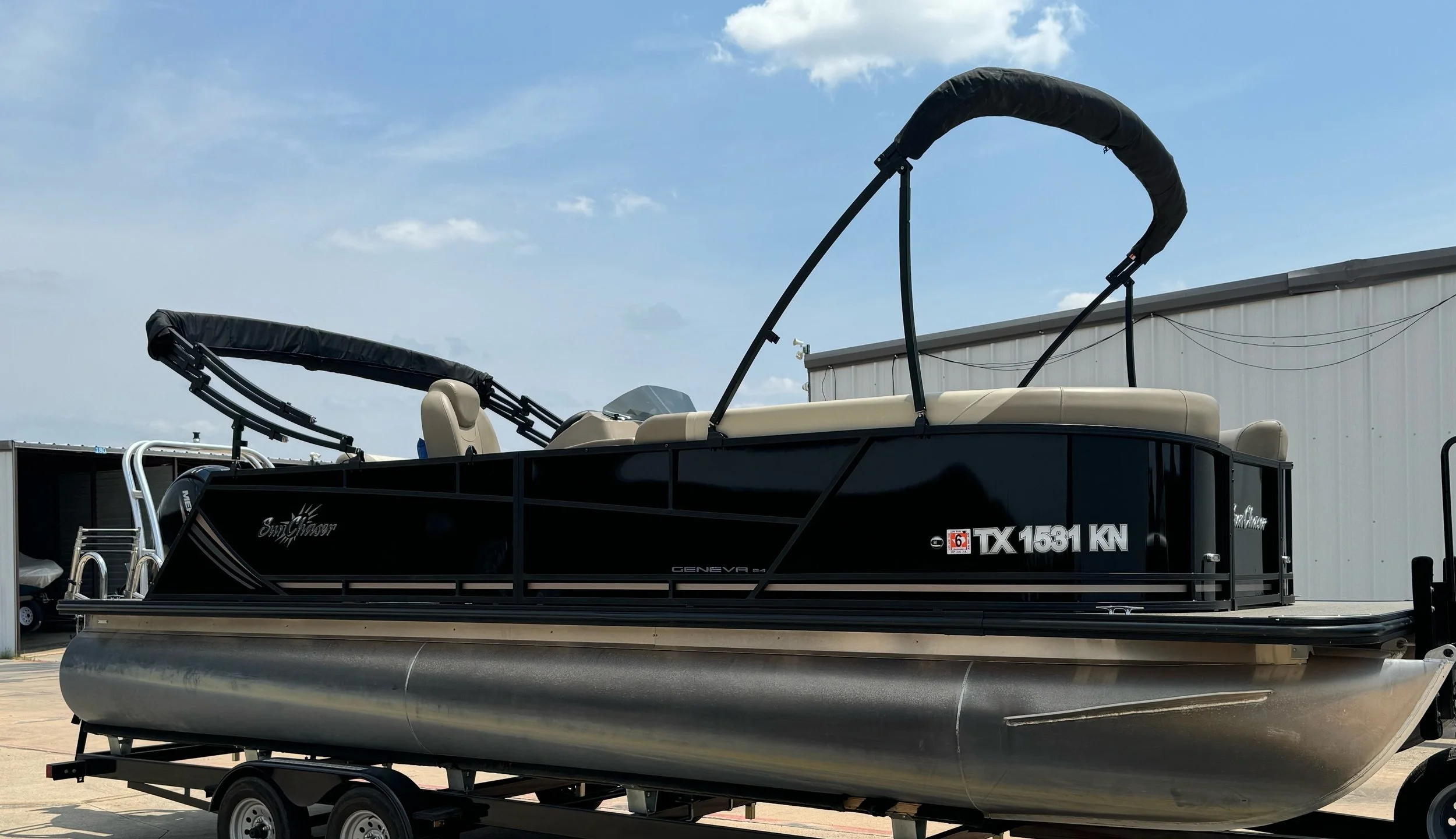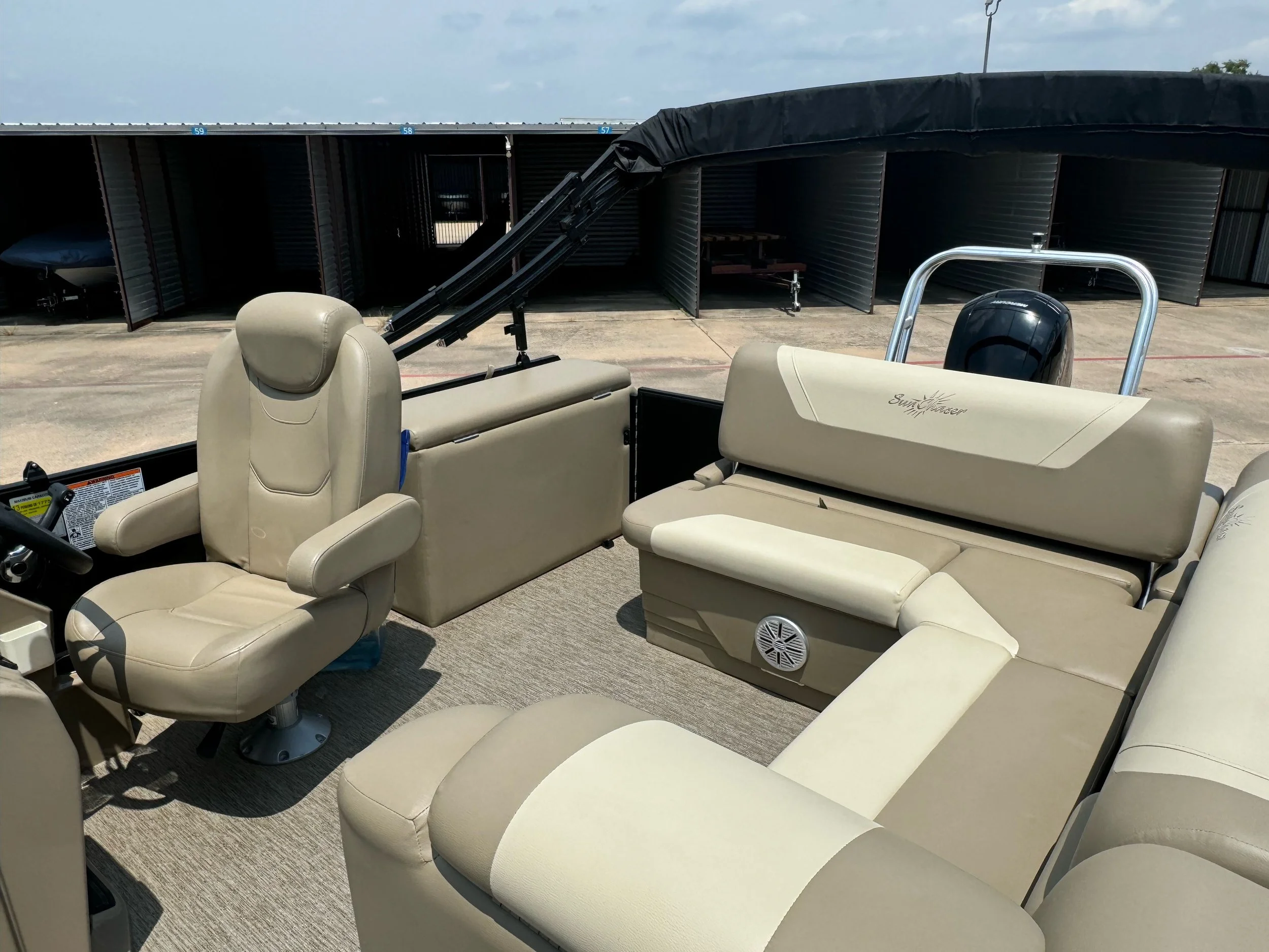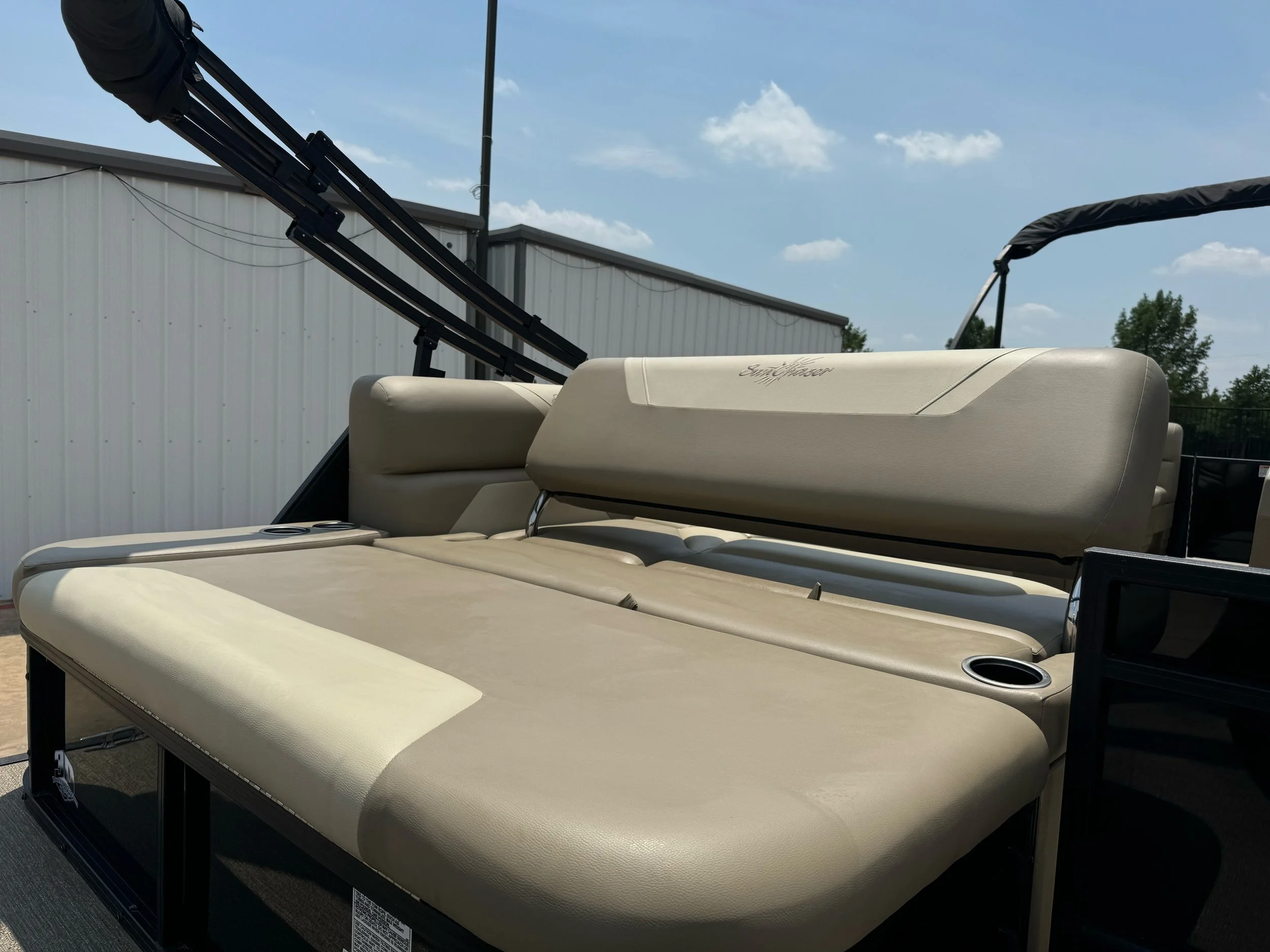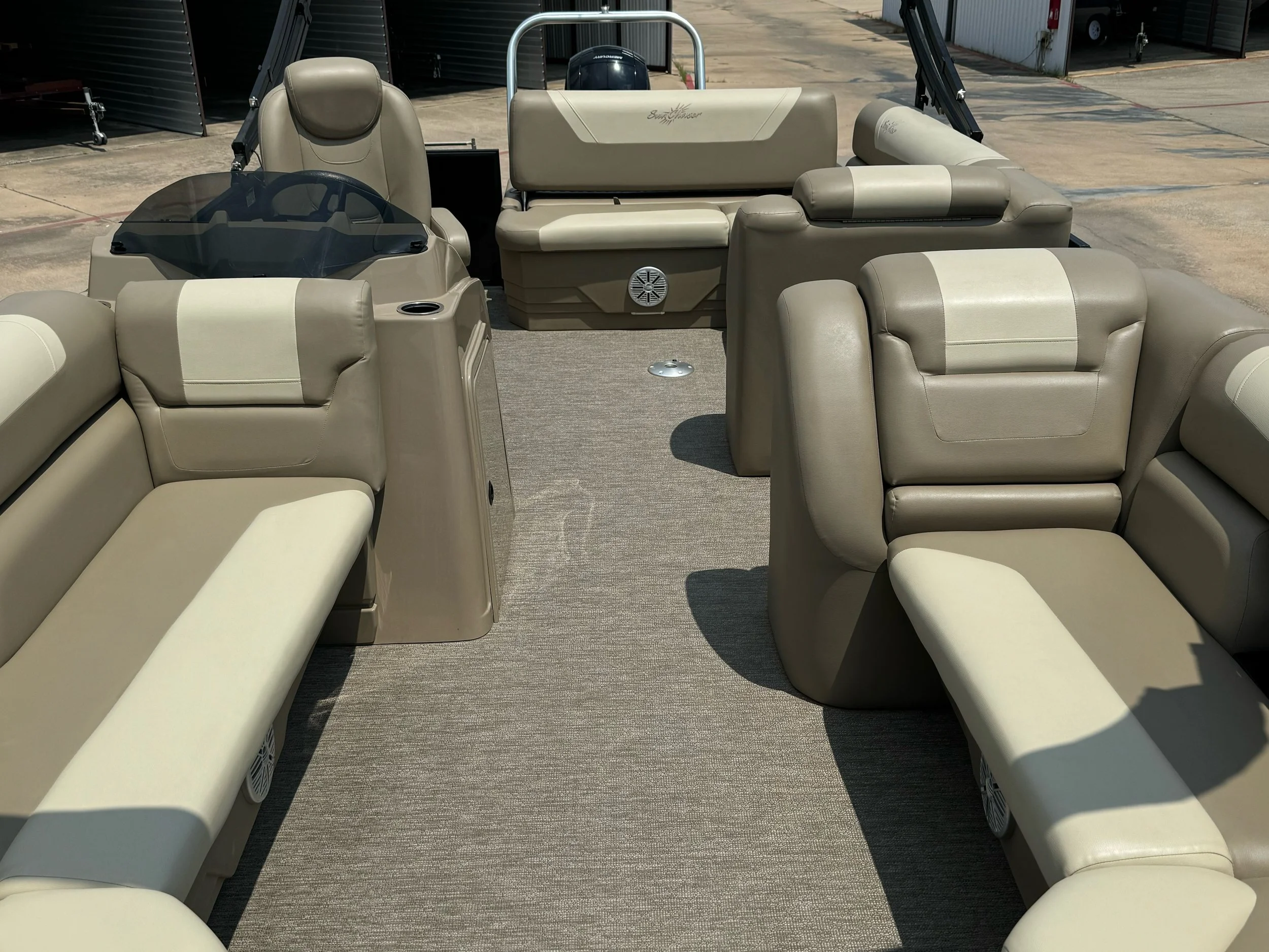 SunChaser's Geneva Cruise 24 SB pontoon offers a winning combination of comfort, functionality, and space for your next water adventure. The standard features ensure a relaxing and enjoyable day for everyone on board. Unwind on the spacious swing-back lounge, the perfect spot to soak up the sun and catch the breeze. Gather your crew for conversation and meals around the built-in table, conveniently located within a comfortable seating area – a great feature for any pontoon gathering. But the Geneva Cruise 24 SB goes a step further with an additional storage locker, providing valuable space for life vests, towels, or any other gear you need for a fun-filled day on the water. This versatile pontoon offers the perfect blend of relaxation, functionality, and ample storage, making it ideal for creating lasting memories with friends and family.